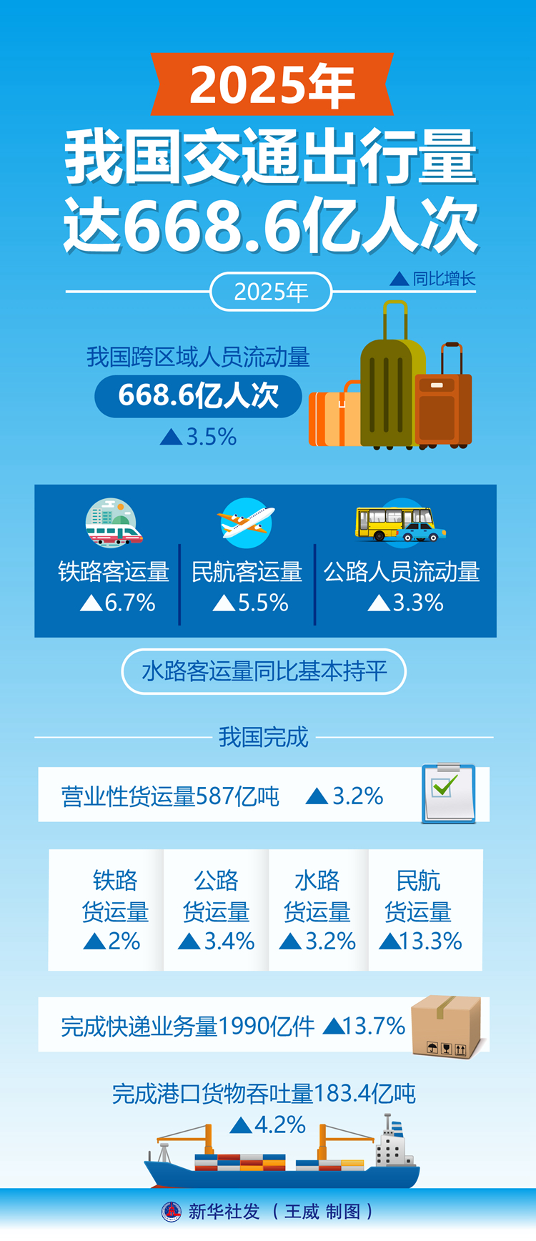 新华社北京1月30日电(记者叶昊鸣、王聿昊)2025年,我国跨区域人员流动量达668.6亿人次,同比增长3.5%。