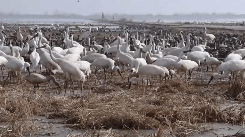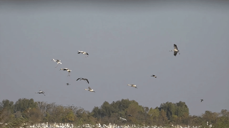 作为世界主要越冬候鸟栖息地,每年秋冬季,有数十万只候鸟从西伯利亚、蒙古国、中国东北等地飞抵鄱阳湖越冬,包括珍稀的白鹤、东方白鹳、灰鹤等。