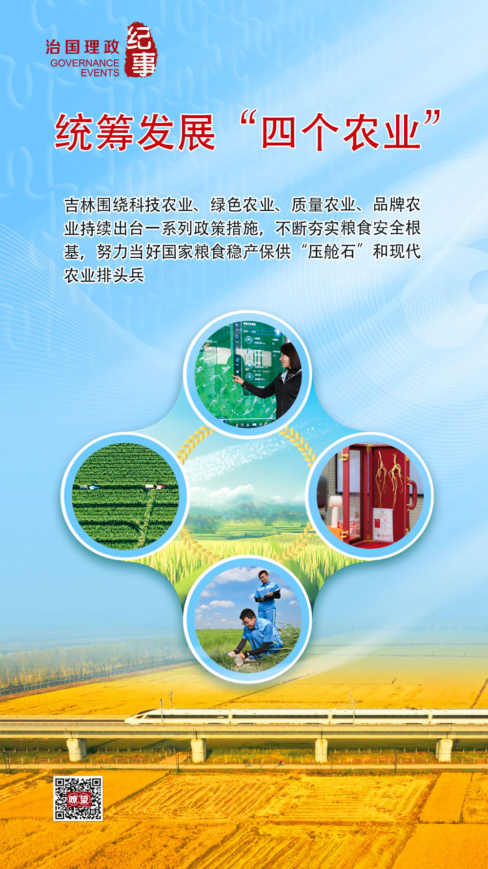 统筹发展科技农业、绿色农业、质量农业、品牌农业,是农业大省吉林夯实粮食安全根基、补齐农业发展短板、加快发展现代化大农业的核心任务与重要抓手。2026年是“十五五”开局之年,吉林将加快推进农业强省建设,努力做好四篇农业文章,推动吉林现代化大农业从“量”到“质”跃升,进一步端牢“中国饭碗”。