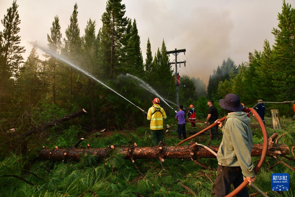 消防人员在阿根廷南部丘布特省埃普延市的火灾现场工作(1月8日摄)。新华社发(马克西·约纳斯摄)