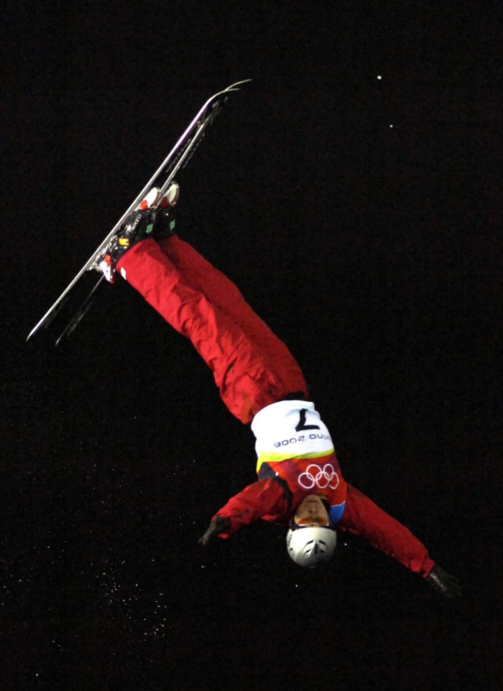 ↑2006年2月23日,韩晓鹏在都灵冬奥会自由式滑雪男子空中技巧决赛中。
