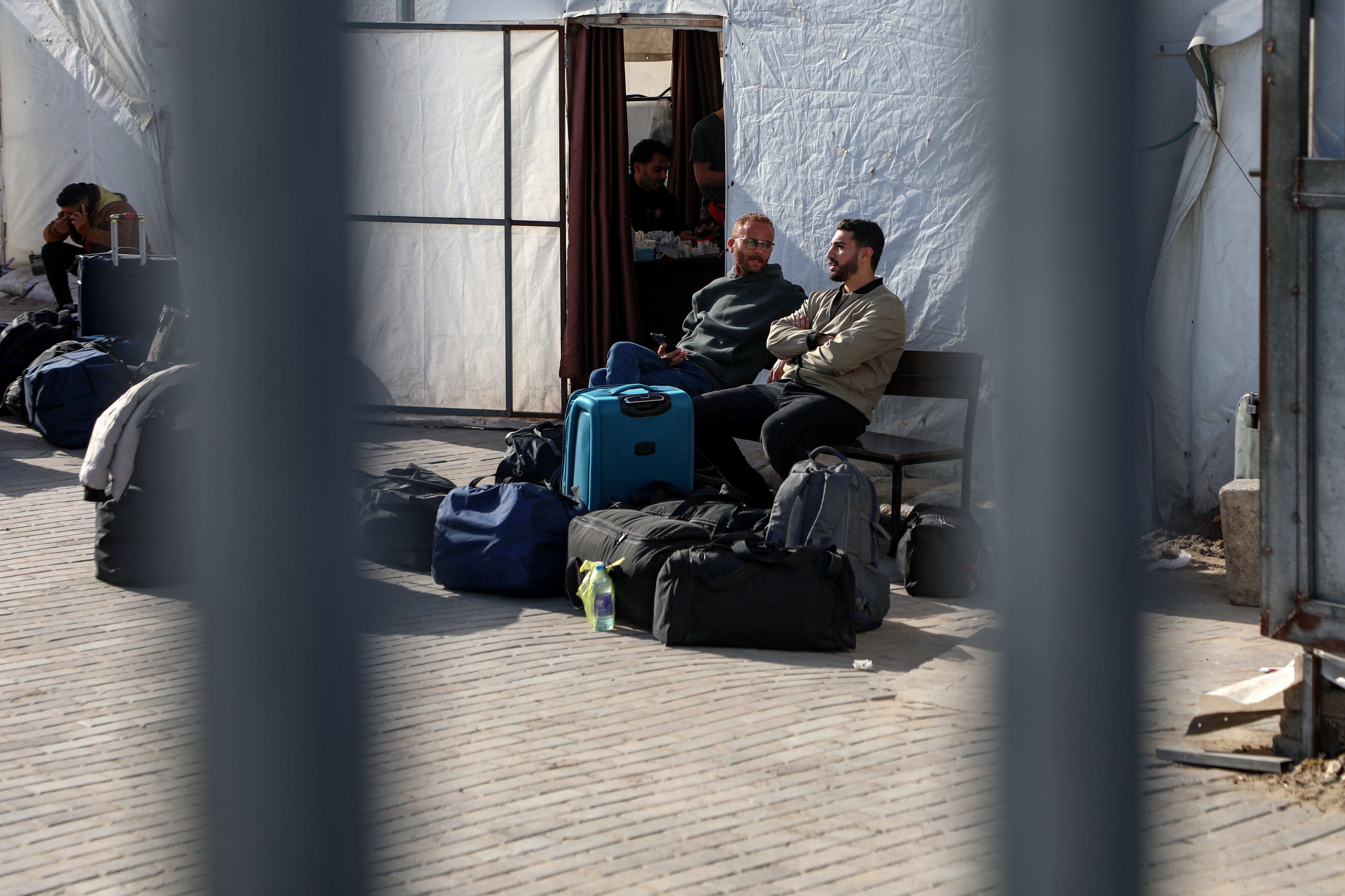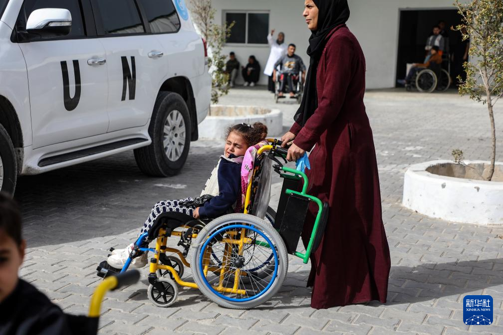 2月2日,在加沙地带南部汗尤尼斯,巴勒斯坦人等待通过拉法口岸到加沙地带以外地区就医。新华社发(里泽克·阿卜杜勒贾瓦德摄)