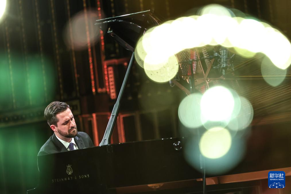 2月2日,在匈牙利首都布达佩斯,匈牙利钢琴家科瓦奇·盖尔盖伊在音乐会上演奏。新华社发(鲍洛格·达维德摄)