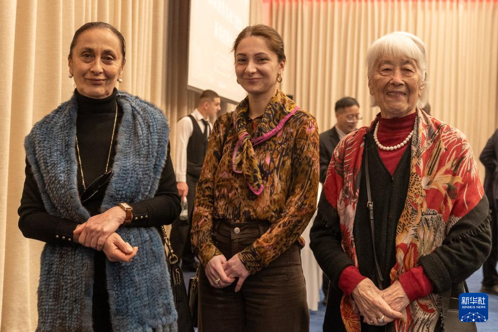 2月2日,在格鲁吉亚首都第比利斯,第比利斯自由大学教授、九十多岁的华人刘光文(右一)与陪同她的亲属一起参加新春招待会。新华社记者 陈俊锋 摄