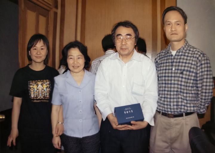 2006年,四川大学法学院三位教授志愿者金明(右一)、曾彤(左一)、伍长康(左二)与一濑敬一郎(右二)在一次诉讼事宜讨论会后合影。(受访者供图)