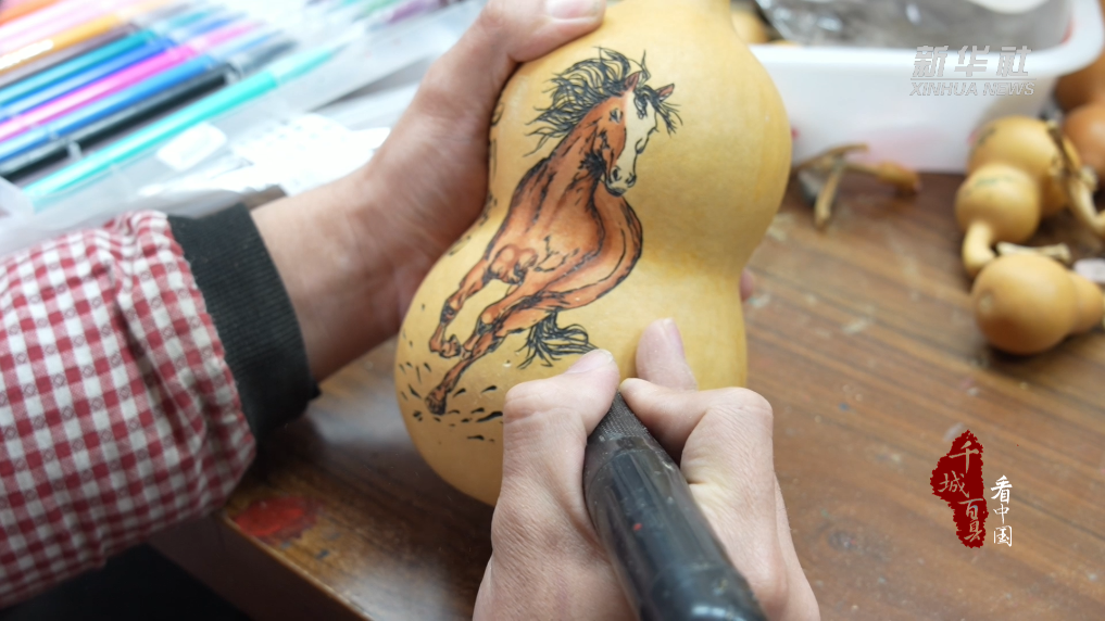 在冠县定远寨镇葫芦文创基地,手工艺人郭鑫贤将马元素与葫芦烙刻技艺巧妙结合,融合雕刻、彩绘、烙画等多种手法,创作出马主题系列葫芦文创作品,为即将到来的农历马年增添了浓郁的文化韵味。