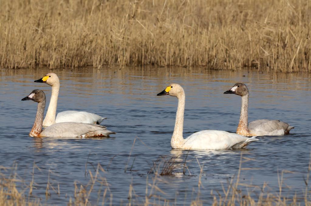 小天鹅在上海崇明东滩鸟类国家级自然保护区栖息(2025年1月22日摄)。