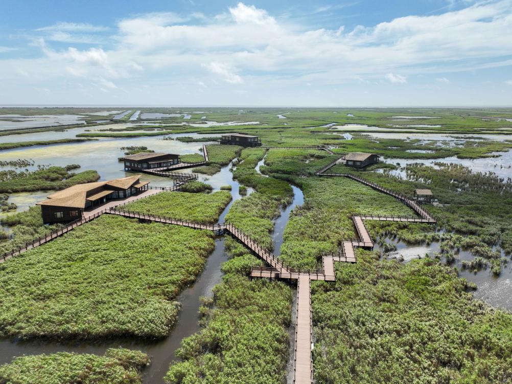 俯瞰上海崇明东滩鸟类国家级自然保护区(2024年7月24日摄,无人机照片)。
