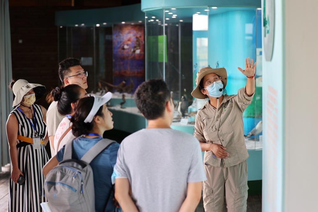 公众在上海崇明东滩鸟类国家级自然保护区科普教育基地参观。