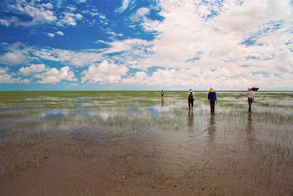 互花米草刈割场景(2016年7月4日摄,无人机照片)。