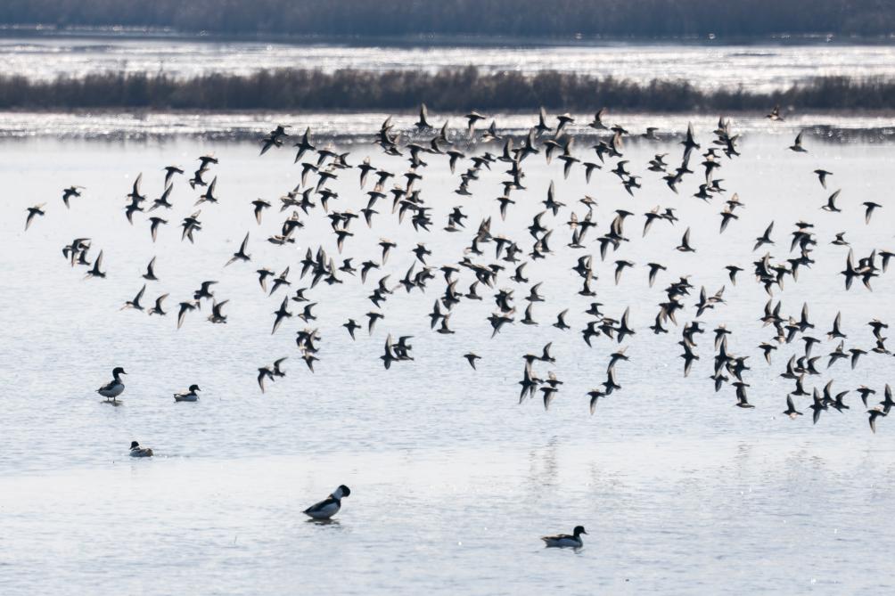 在上海崇明东滩鸟类国家级自然保护区拍摄的候鸟(2024年11月12日摄)。