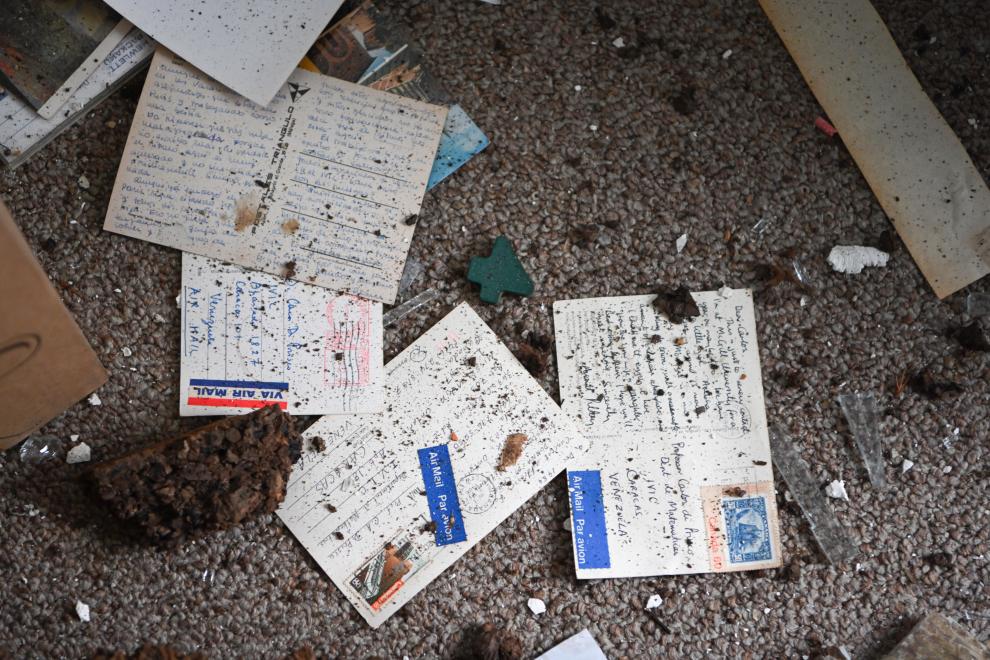 1月19日,在委内瑞拉米兰达州委内瑞拉科学研究院数学中心,明信片散落一地。委内瑞拉科学研究院是该国最高水平的科研机构和重要人才培养基地。1月3日凌晨美国的军事行动严重损毁委内瑞拉科学研究院设施,建筑物及精密科研设备遭破坏。新华社记者 丁洪法 摄