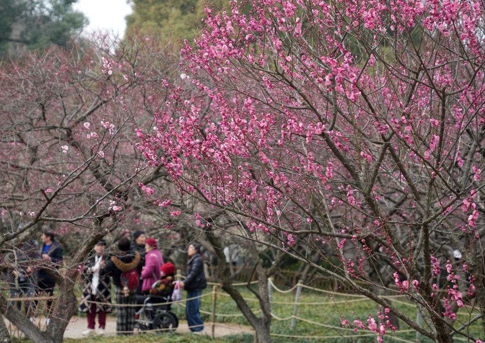 游人在杭州西湖景区孤山梅园内赏梅。新华社记者 韩传号 摄