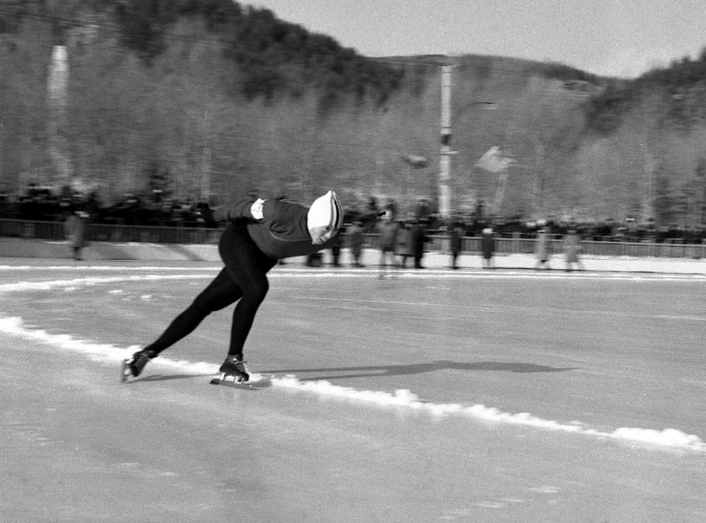 1974年,赵伟昌在全国冰上运动会中。新华社记者 范惠琛 摄