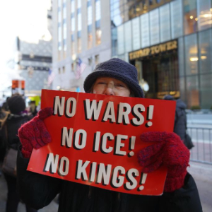 1月20日,在美国纽约,民众参加抗议活动。新华社记者张凤国摄