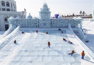 傍晚,长春冰雪新天地繁灯焕彩,最受欢迎的“空中千米雪漂流”上,游人乘着雪圈鱼贯而下,风声混着笑声、叫声,此起彼伏。