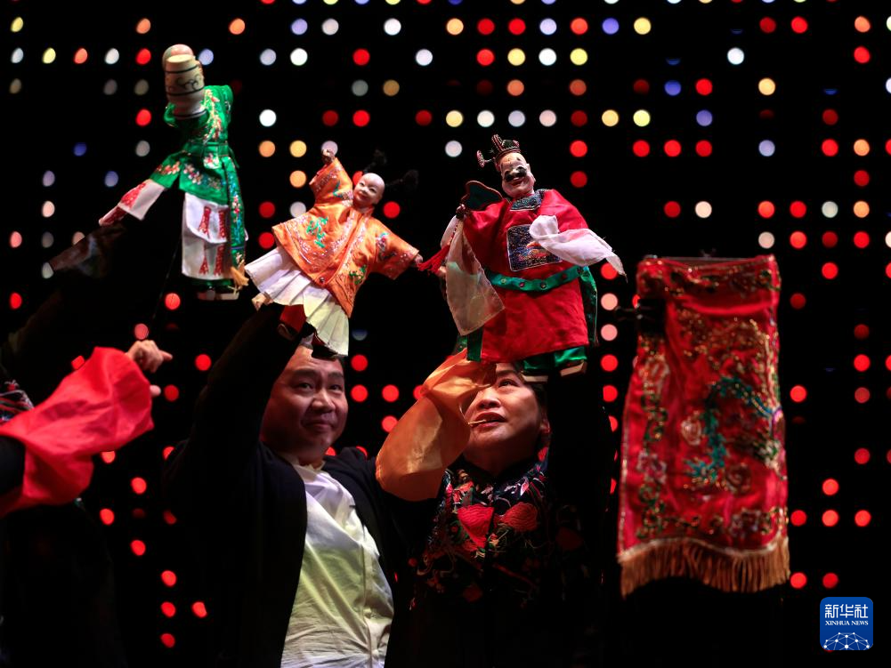 2月5日,在匈牙利布达佩斯,演员表演布袋木偶戏。新华社发(鲍洛格·拉斯洛摄)