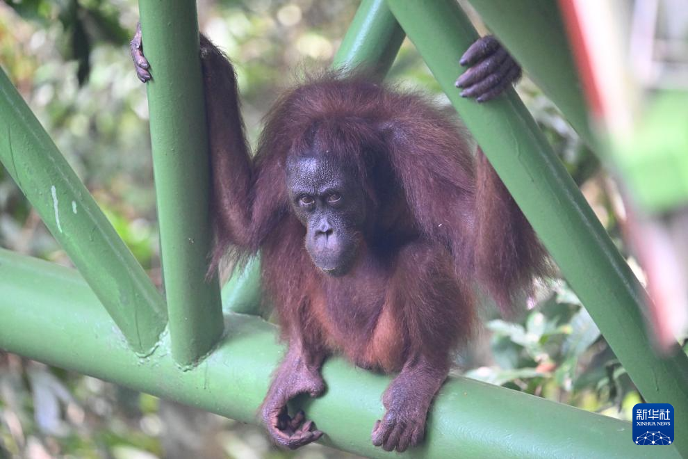 这是1月19日在马来西亚山打根郊外的雨林探索中心附近拍摄的红毛猩猩。新华社记者 程一恒 摄
