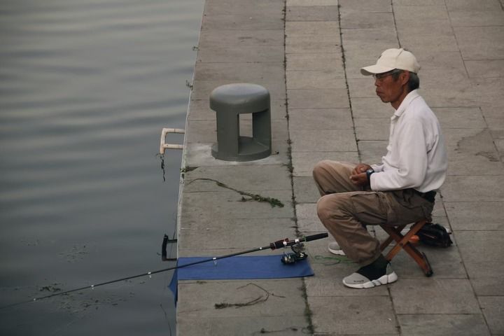 海河边钓鱼的人。