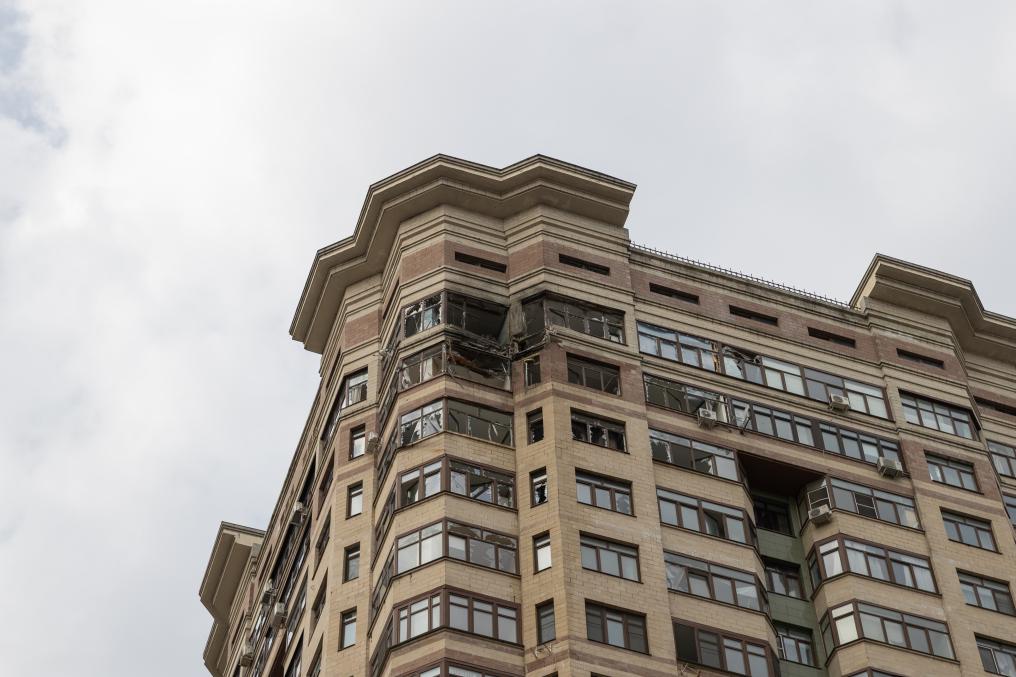 这是2025年3月11日在俄罗斯莫斯科州东南部拍摄的受损住宅楼。俄国防部当天发布消息说,俄防空部队一夜之间击落337架乌克兰无人机。新华社记者白雪骐摄