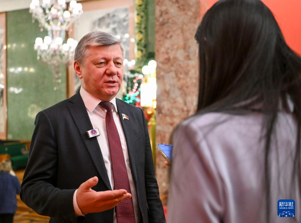 2月6日,在俄罗斯首都莫斯科,俄国家杜马(议会下院)国际事务委员会第一副主席德米特里·诺维科夫在俄罗斯友人新春招待会上接受新华社记者采访。新华社记者 郝建伟 摄