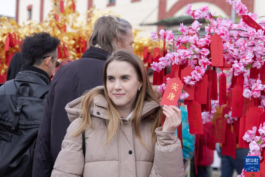 活动现场还设有沉浸式的文化体验区。参与者脱下厚重的冬装,换上飘逸的汉服;在宣纸上练习书法的一撇一捺;或是在中医展位前探寻古老的东方智慧。