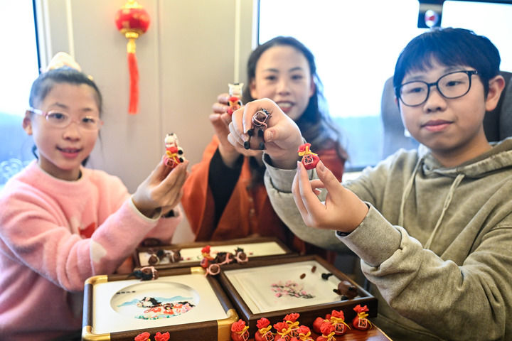 “捏完尾巴,再让小马‘抱’个福袋,‘马上有福’啦!”列车飞驰间,面塑艺人罗小唯的绝活引来孩子和家长们围观,孩子们踊跃参与其中,旅途的乏味被一扫而空。