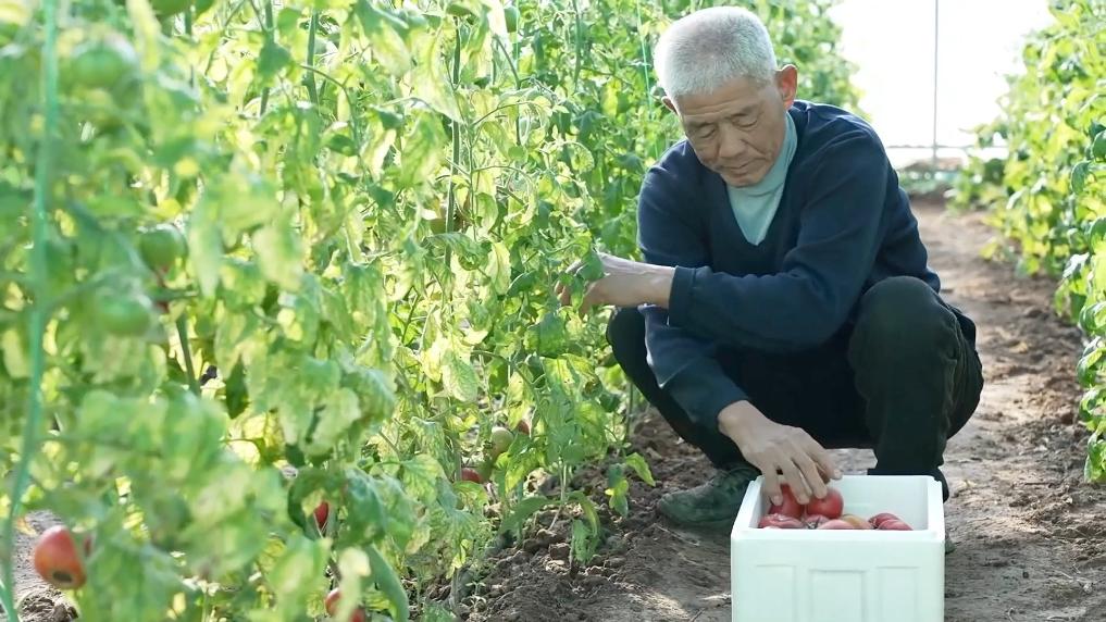 在沧州市海兴县后刁村的温室大棚,村民们俯身采摘、分拣装箱。这些从盐碱地里长出来的新鲜果蔬,正赶着供应春节前的市场。