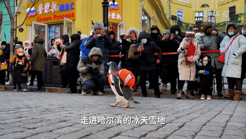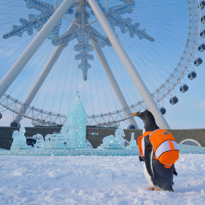 “淘学企鹅”“打卡”哈尔滨音乐广场。新华社发