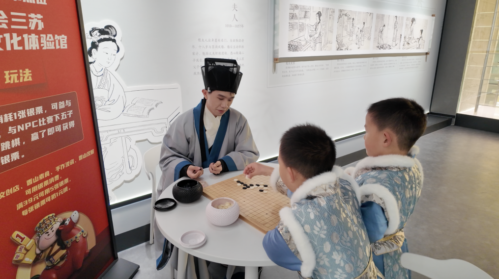腊月已深,年味渐浓,河南平顶山大香山文博园文化大集上熙熙攘攘。喧闹中,不少人循着“三苏”专程而来——尝尝酥脆可口的东坡饼,与NPC“苏轼”对诗下棋,并在园区新近开放的三苏文化数字体验空间内,与苏洵、苏轼、苏辙父子展开一场跨越时空的对话。