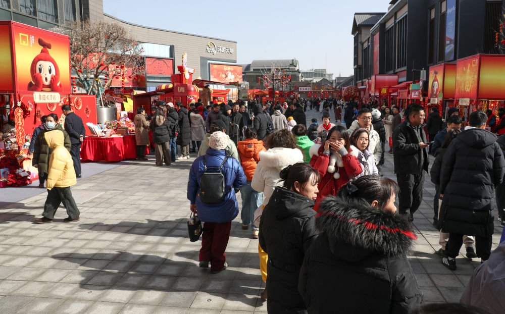 2026年2月7日,市民游客在上海市南京路步行街一家春节限定潮玩快闪店挑选商品。