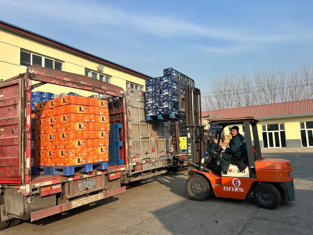 天津市岳城食品有限公司包装好的成品瓜子正在装车。新华社记者毛振华 摄