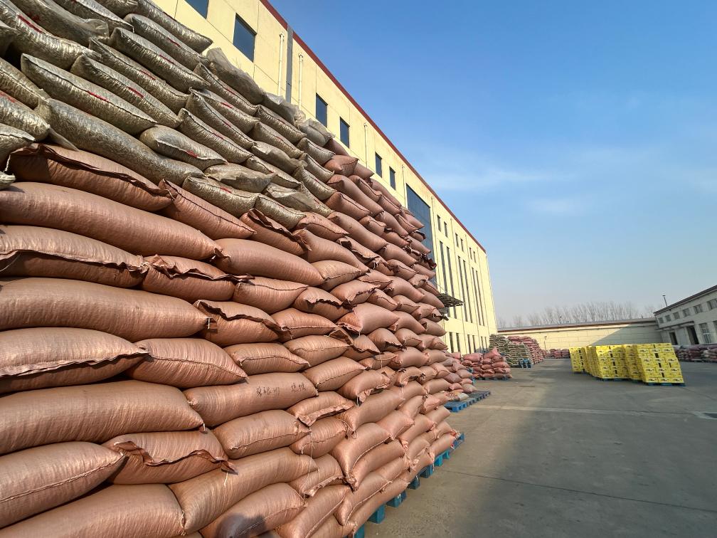 春节临近,天津市岳城食品有限公司院内生瓜子堆垛成小山。新华社记者毛振华 摄