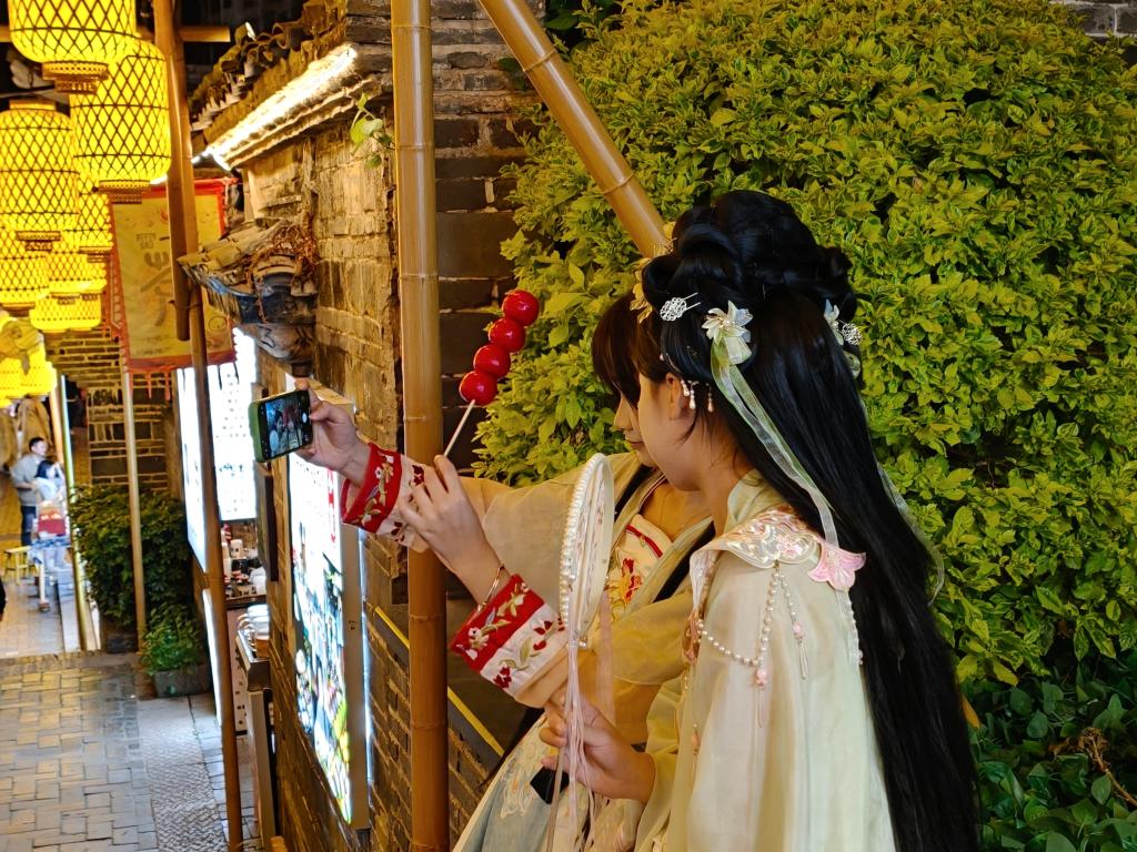夜色渐深,“宋潮不夜城”的灯光依旧明亮。小吃街的灯光映在石板路上,远处传来轻扬的戏曲声。古老的宋韵正与当代的烟火气交融,为这座城市的发展持续注入新的活力。