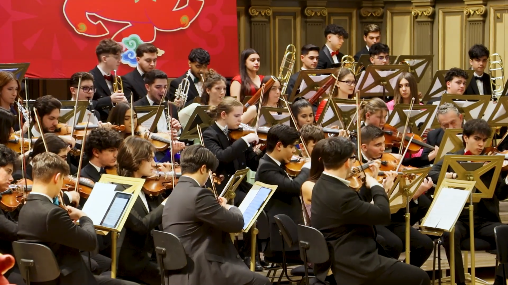 当地时间10日晚,罗马尼亚首都布加勒斯特雅典娜音乐厅座无虚席,约800名观众欣赏了由江苏无锡民族乐团与罗马尼亚迪努·利帕蒂国家艺术学院交响乐团联袂呈现的“欢乐春节”音乐会,在中西合璧的乐声中感受江南春韵。