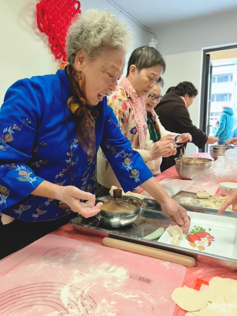 在彭一小区居委会的大会议室内,长桌“一”字排开,案板上整齐摆放着擀好的饺子皮和鲜香的馅料。“这是我们的‘回迁第一饺’,得包好看点!”75岁的彭菊华和邻居们一起揉面、擀皮、包馅,忙得不亦乐乎。