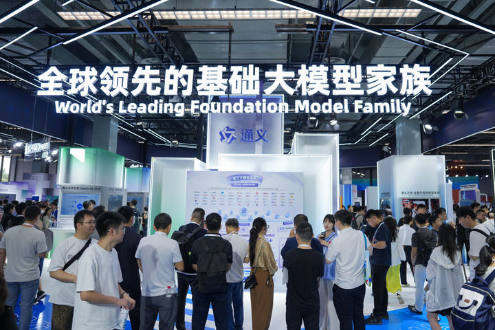 2025年9月24日,观众在浙江杭州云栖小镇举行的2025云栖大会上了解AI应用技术。新华社记者 黄宗治 摄