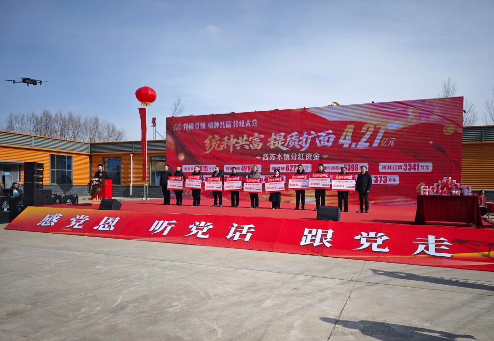 2月6日,达拉特旗政府在吉格斯太镇蛇肯点素村举行的“党建引领·统种共富”分红大会现场。 新华社记者贾立君 摄