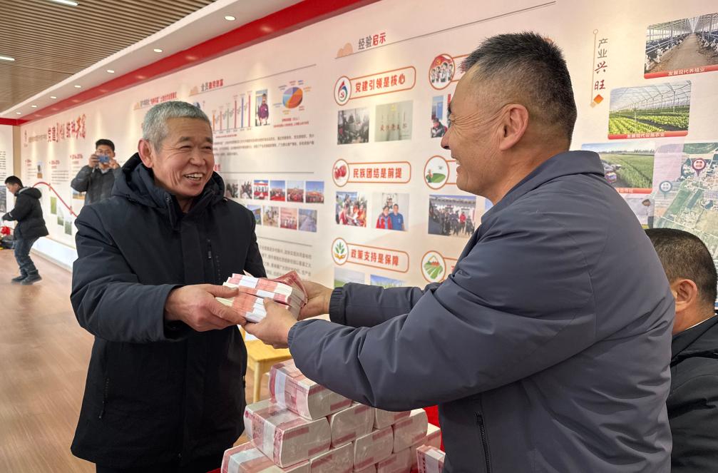 “我家领了13.2万元分红款,还入股了共富大棚项目,心里既踏实又振奋。”2026年2月10日,北方小年当天,在本村2025年度“党建引领·统种共富”分红仪式现场,官牛犋南社村民王二根乐呵呵地说,“这几年集体种田,收入一年比一年高。”
