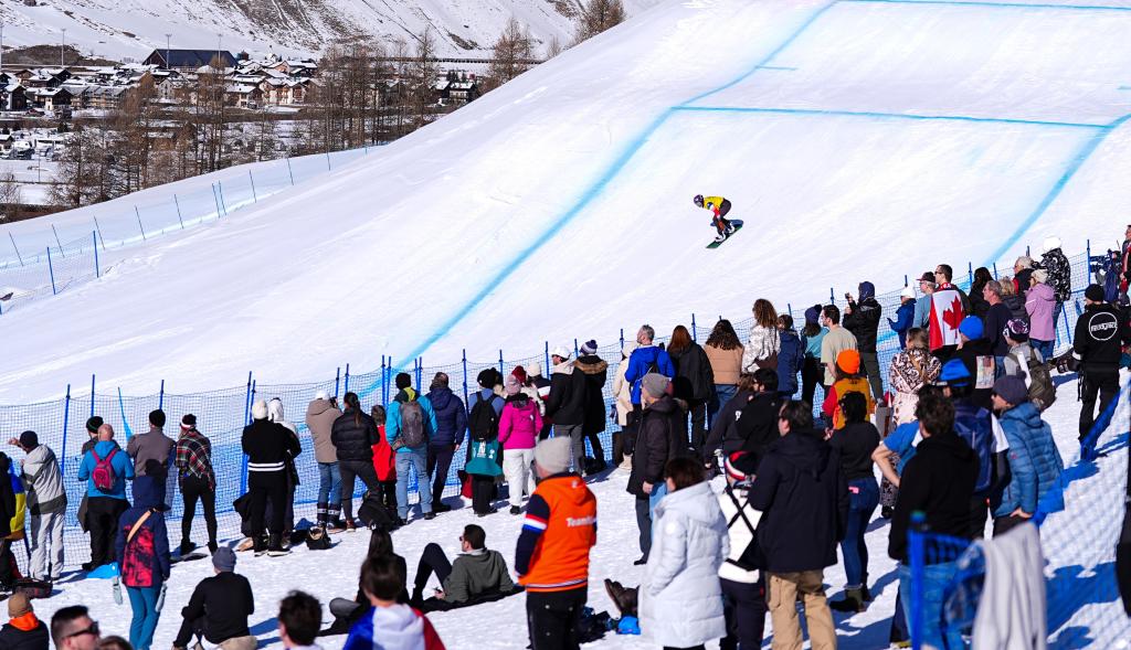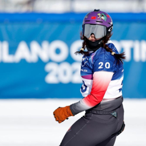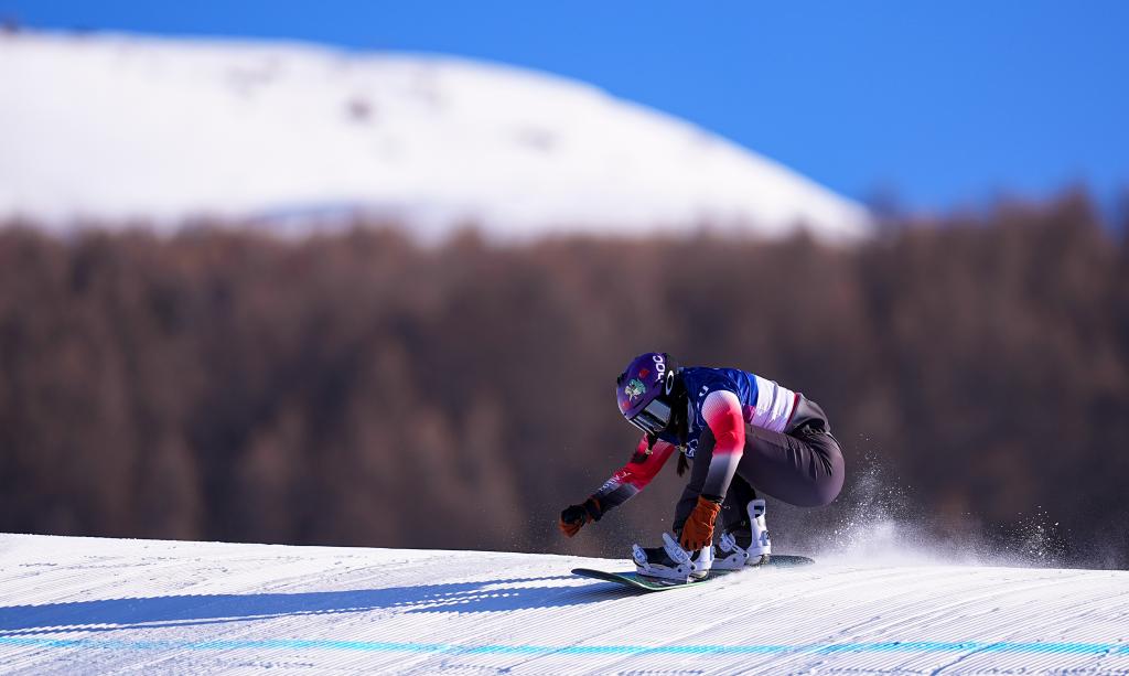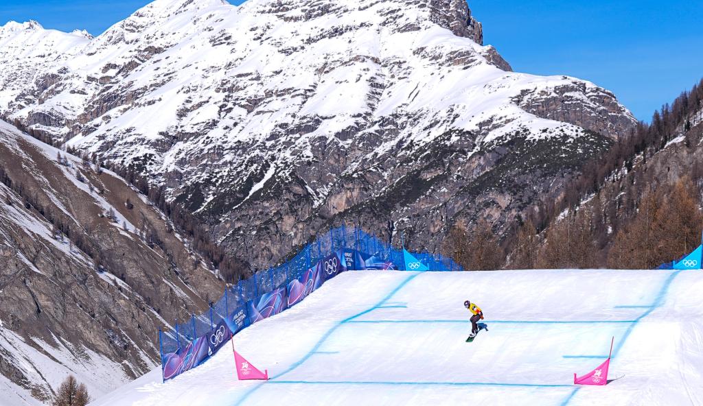 13日,米兰冬奥会单板滑雪女子障碍追逐比赛在这里进行。22岁的藏族姑娘拥青拉姆滑过终点线后停住,扶了扶雪镜,站着缓了一会儿。她没有立刻去看成绩,而是抬头望向刚刚滑下来的那条赛道——半壁、跳台、弯道一段段延伸向山脚。