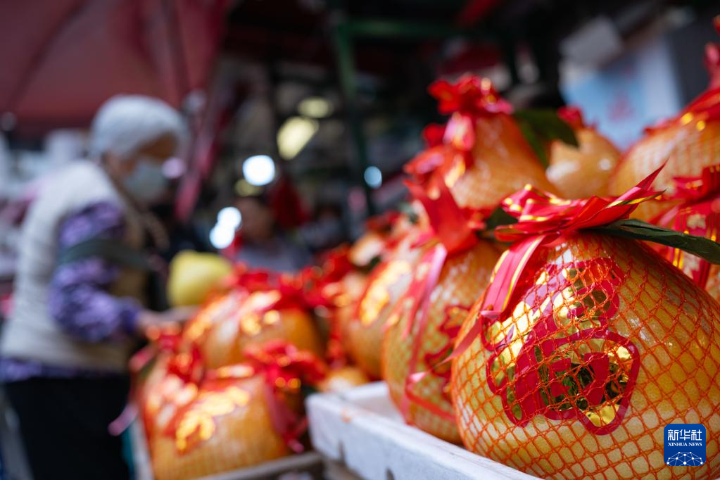 2月12日,市民在澳门红街市买柚子。新华社发(张金加 摄)