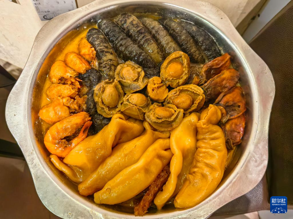 南哥介绍,盆菜是道“功夫菜”,里面的食材比如海参、猪皮要准备至少一周,鲍鱼、花胶也都要准备2至3天。“盆菜是我们过年的招牌菜,过年了,大家高高兴兴、团团圆圆吃个饭。”