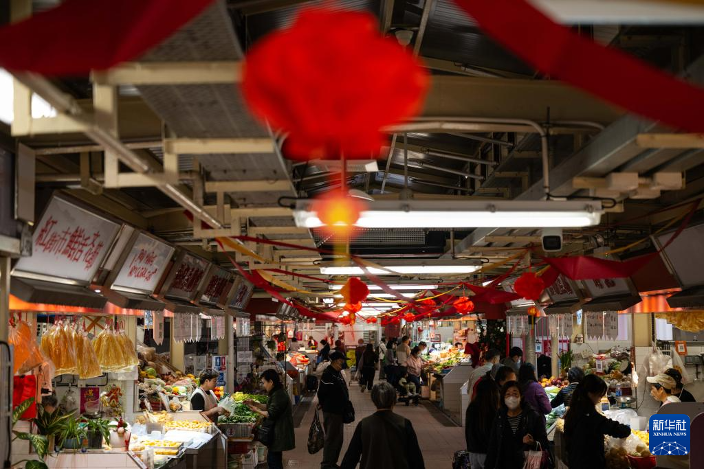 2月12日,市民在澳门红街市选购食材。新华社发(张金加 摄)