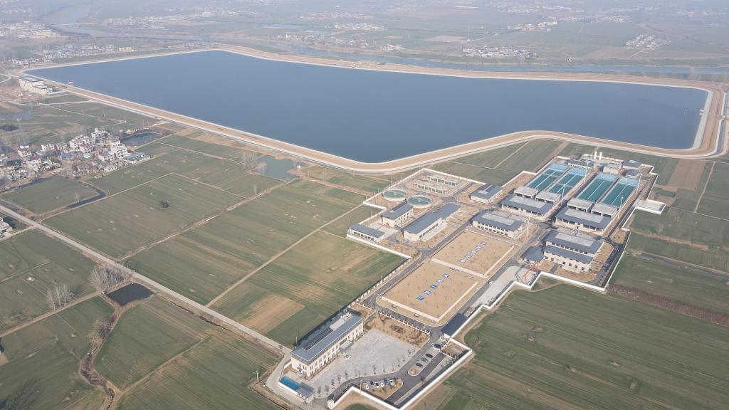 太和调蓄池航拍图。图片右下方是新建的一处地表水厂。(高浩 摄)