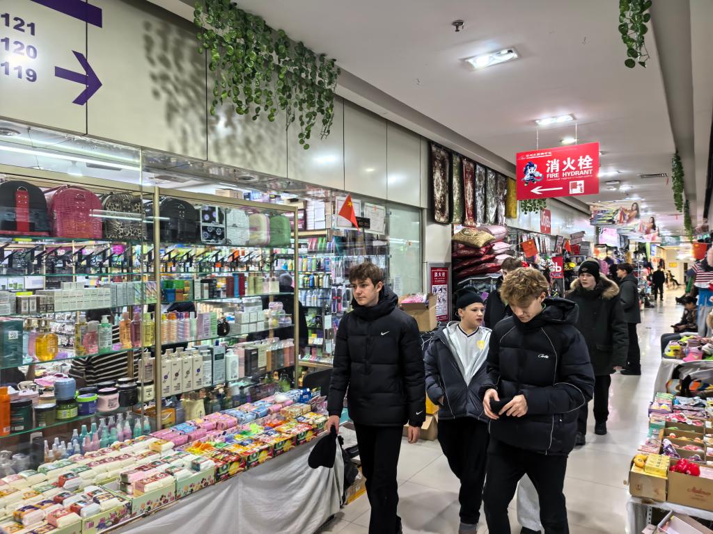 在套娃酒店附近的特色商品店里,俄罗斯巧克力挨着红彤彤的中国结,手工琥珀饰品旁摆着绘有“福”字的摆件。阿柳娜的小背包越装越满,她和爸妈约定,以后每年都要来满洲里过年。