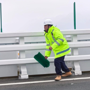 一抹“荧光”飞速进入桥面中央,捡起掉落的防眩板,又悄然撤回路边。