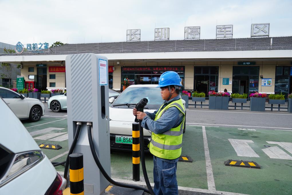 春节期间,谢开泽在检查充电桩设施。新华社记者 王丰 摄