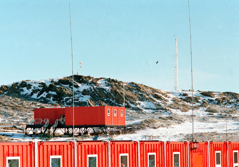 1989年拍摄的中山站的气象楼。新华社记者 张继民 摄