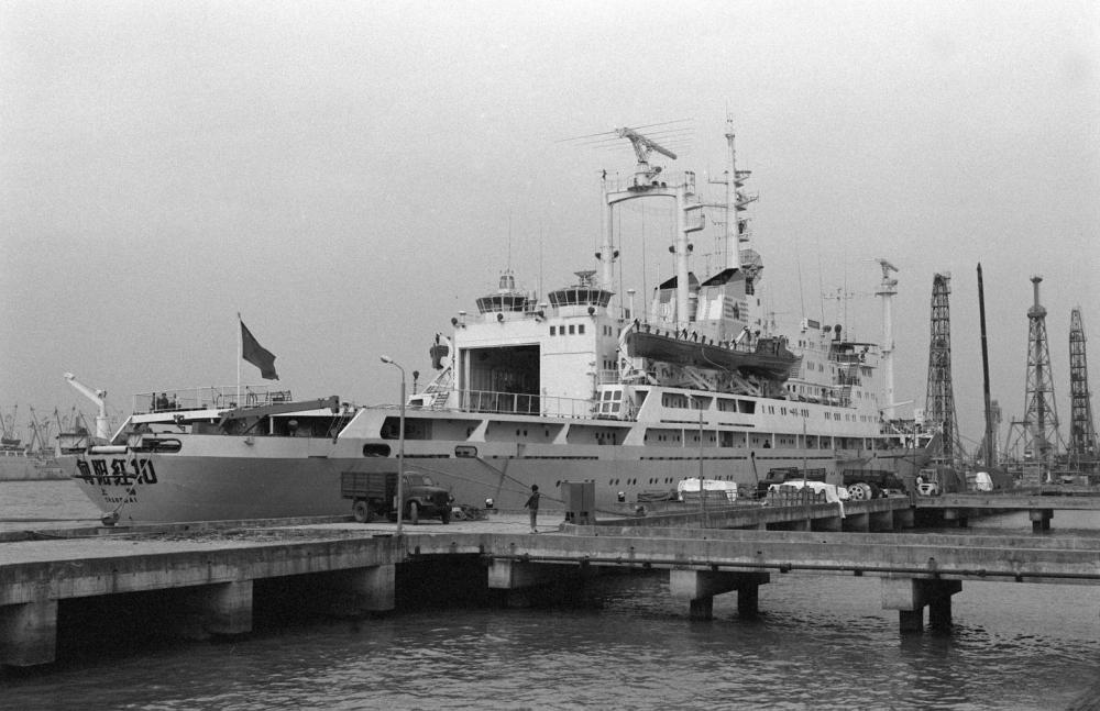 1984年,我国首次参加南极洲科学考察的“向阳红10号”科学考察船在上海黄浦江待命启航。新华社记者 戴纪明 摄