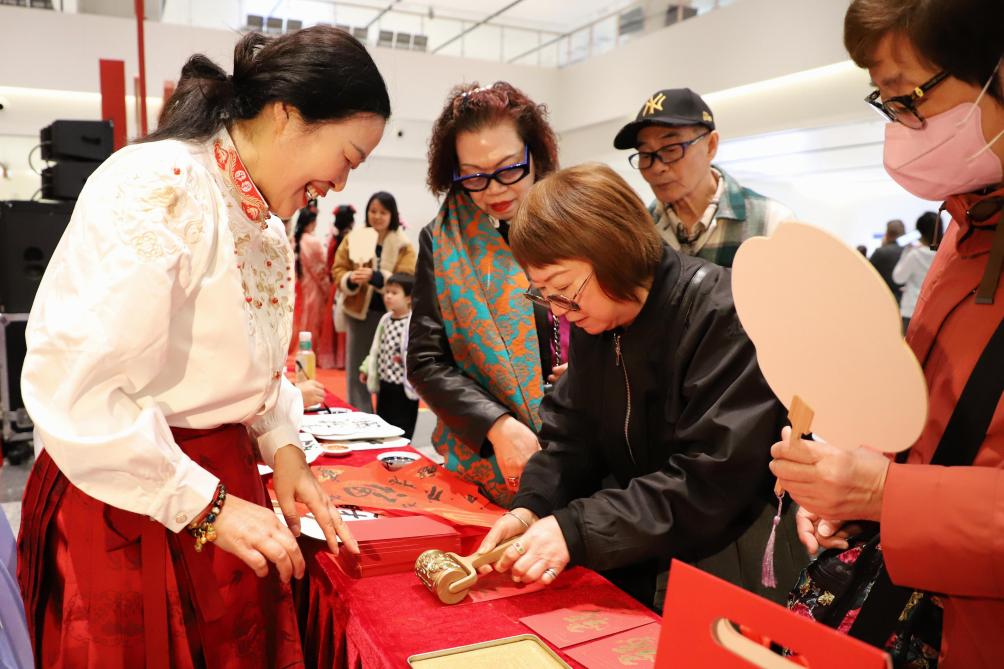 丽星邮轮“领航星”号上的游客在厦门国际邮轮母港体验拓印红包。新华社发